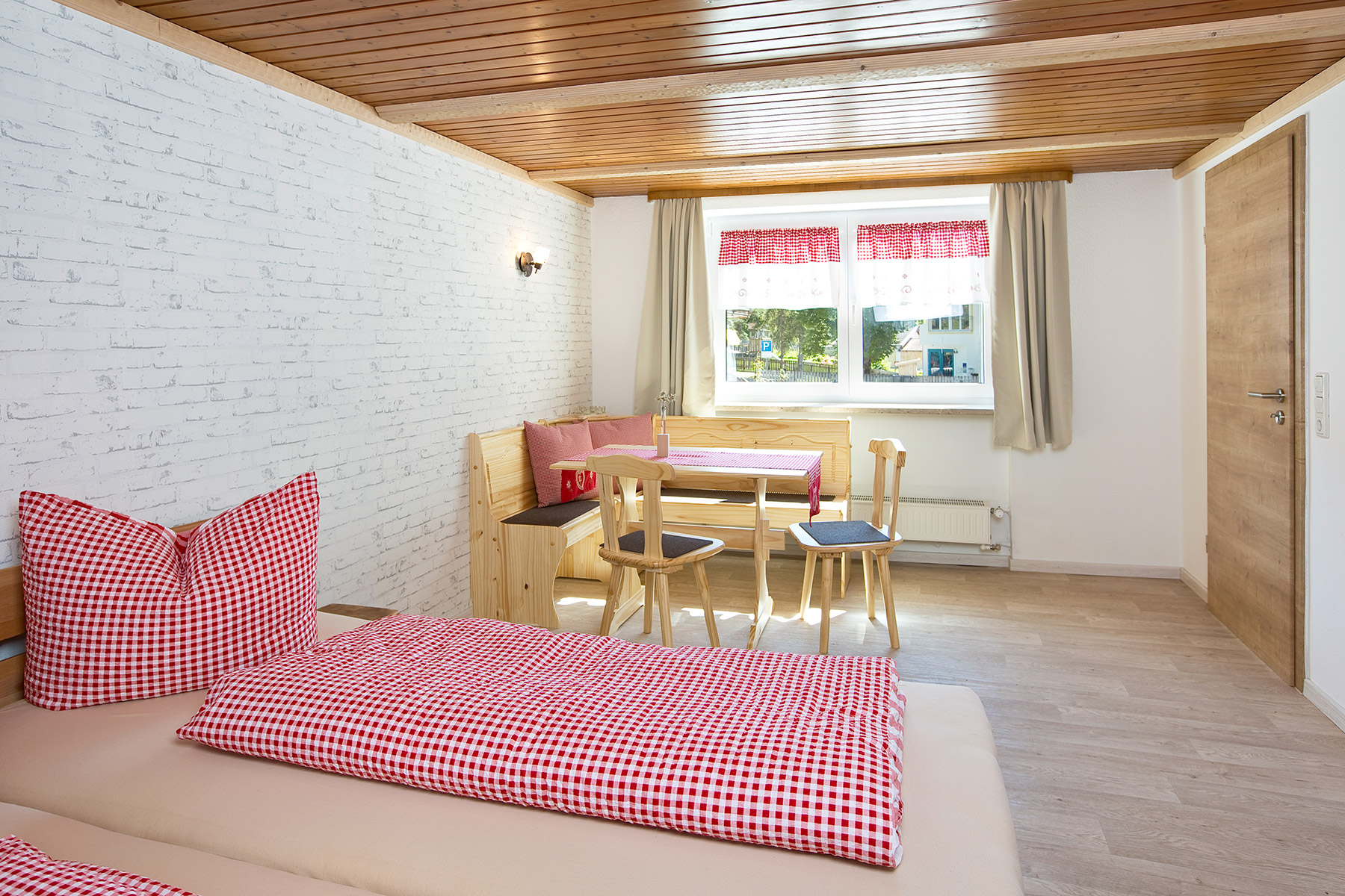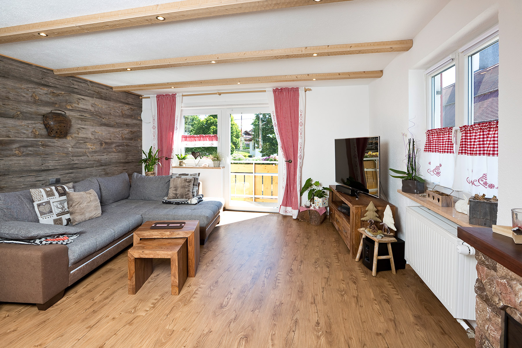 Die bewusst rustikalen Elemente setzen auch in den Privaträumen im Obergeschoss Beziehungen zur Allgäuer Natur und Tradition und ergeben so ein authentisches Gesamtbild. „Almkult“ eben – der Name ist Programm. Geborgenheit, Wohlfühlambiente und Liebe zum Detail symbolisieren privaten Rückzug und zugleich ein freies Wohngefühl durch die Großzügigkeit der Räume.