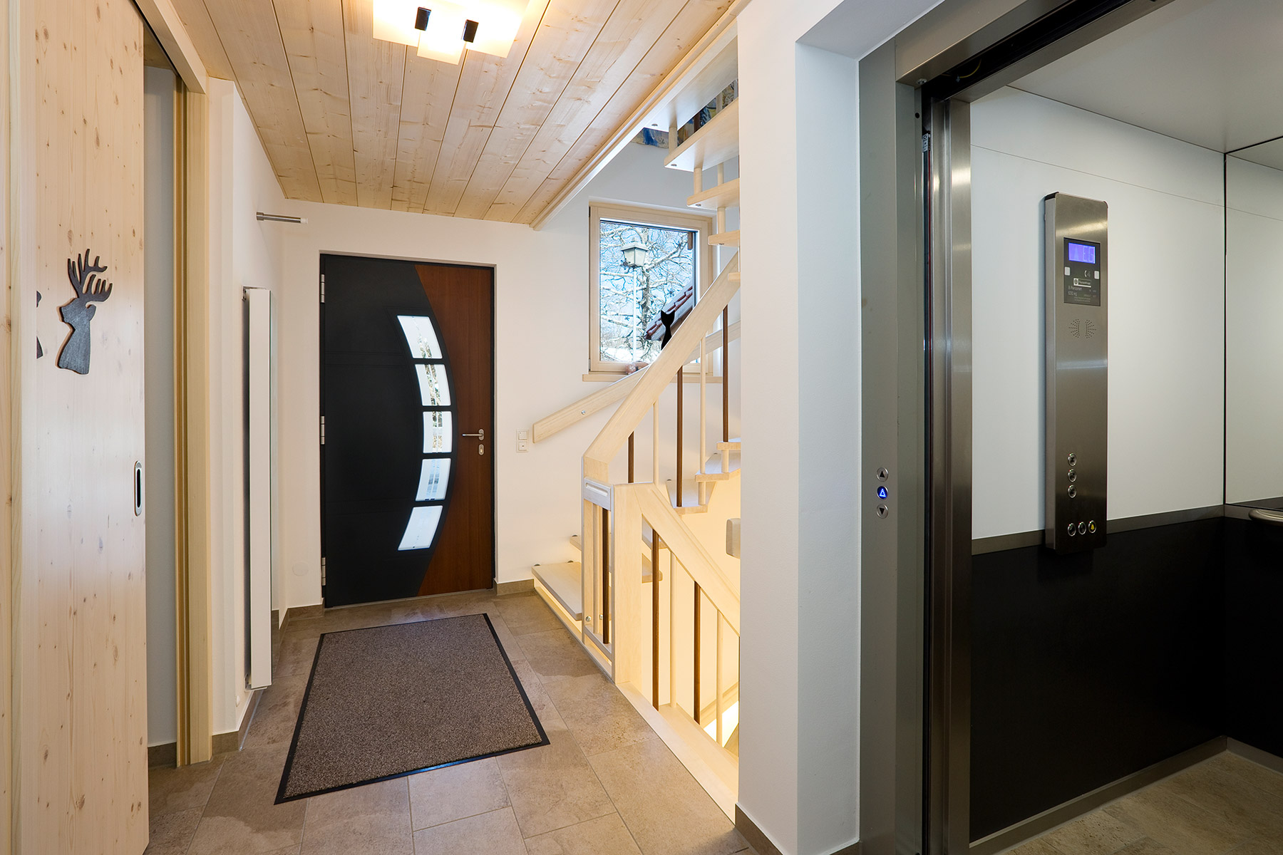 Das barrierefreie Konzept bekommt durch einen integrierten Personenaufzug seine ganzheitliche Vollendung. Somit wird jeden Tag im gesamten Haus der Komfort erlebt, alle Räume schwellenlos erreichen zu können.
