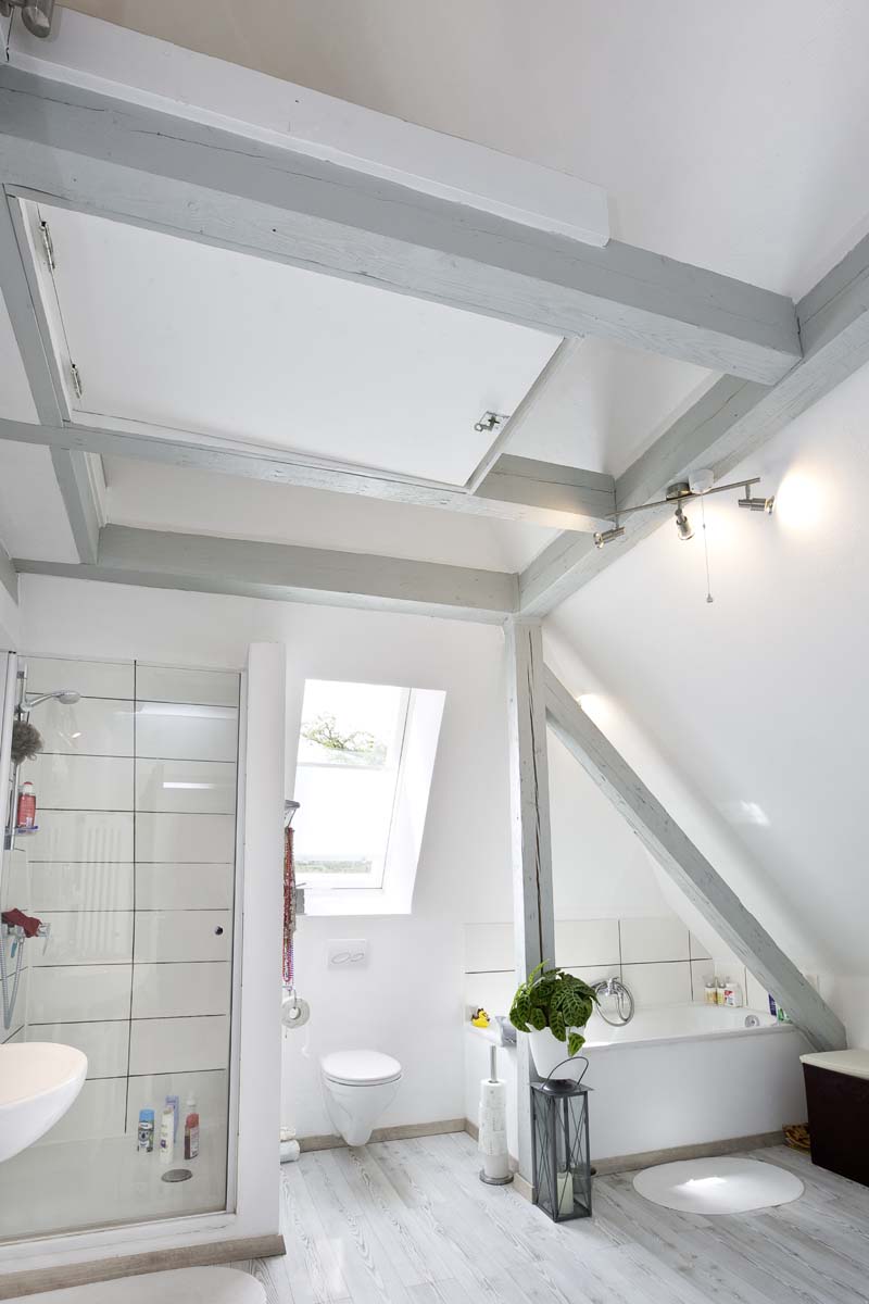 Zusammen mit der Komplettsanierung des Dachgeschosses entschieden sich die Bauherren für eine Dachsanierung mit neuer Dacheindeckung und eine Dämmung aus Holzfaser. Dadurch ist das Dach fit für die Zukunft und die Bewohner können sich im Winter an wohliger Wärme und im Sommer über angenehm kühle Dachgeschossräume freuen.