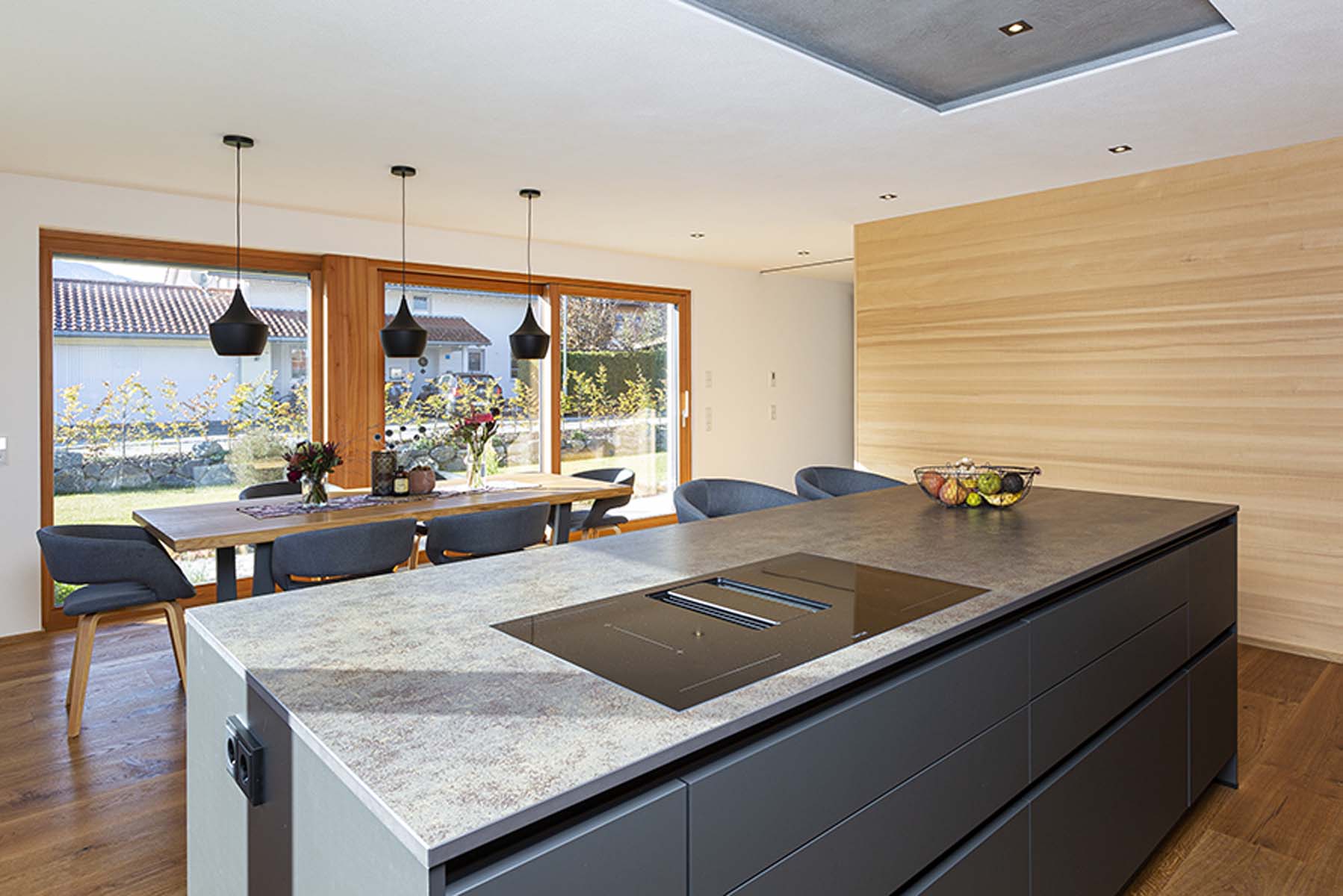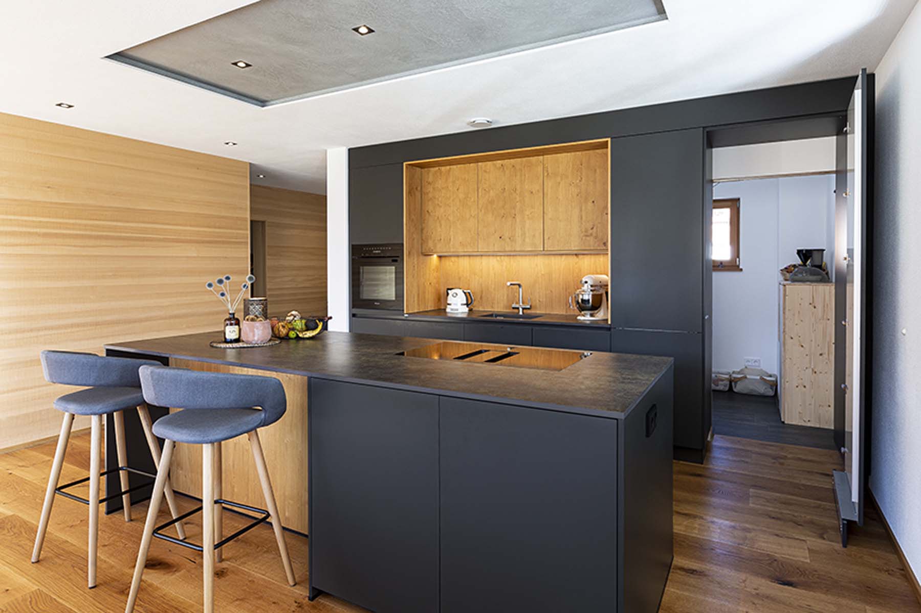 Highlight dieser Küche ist die versteckte Speisekammer, welche perfekt in das moderne Design integriert ist.