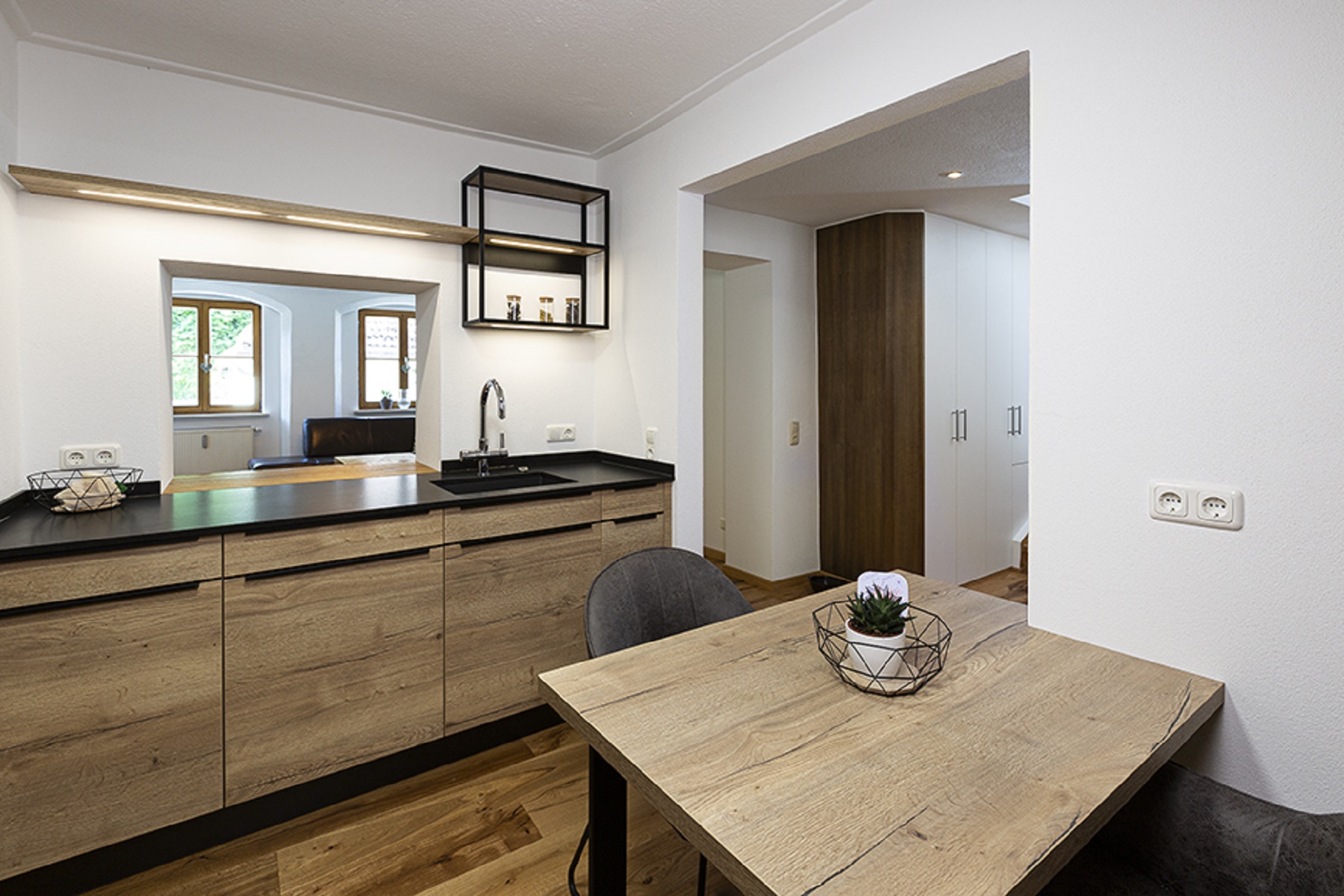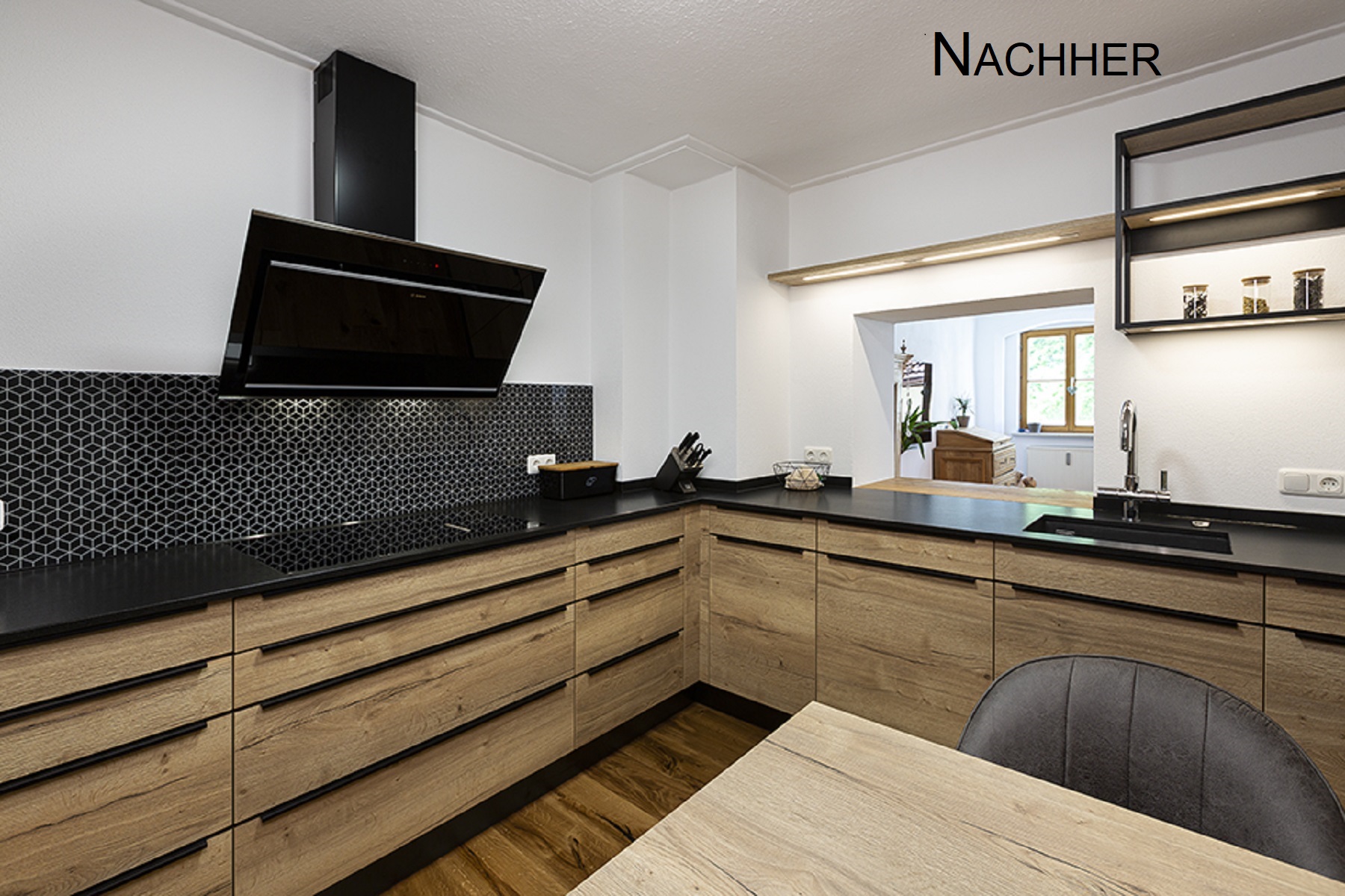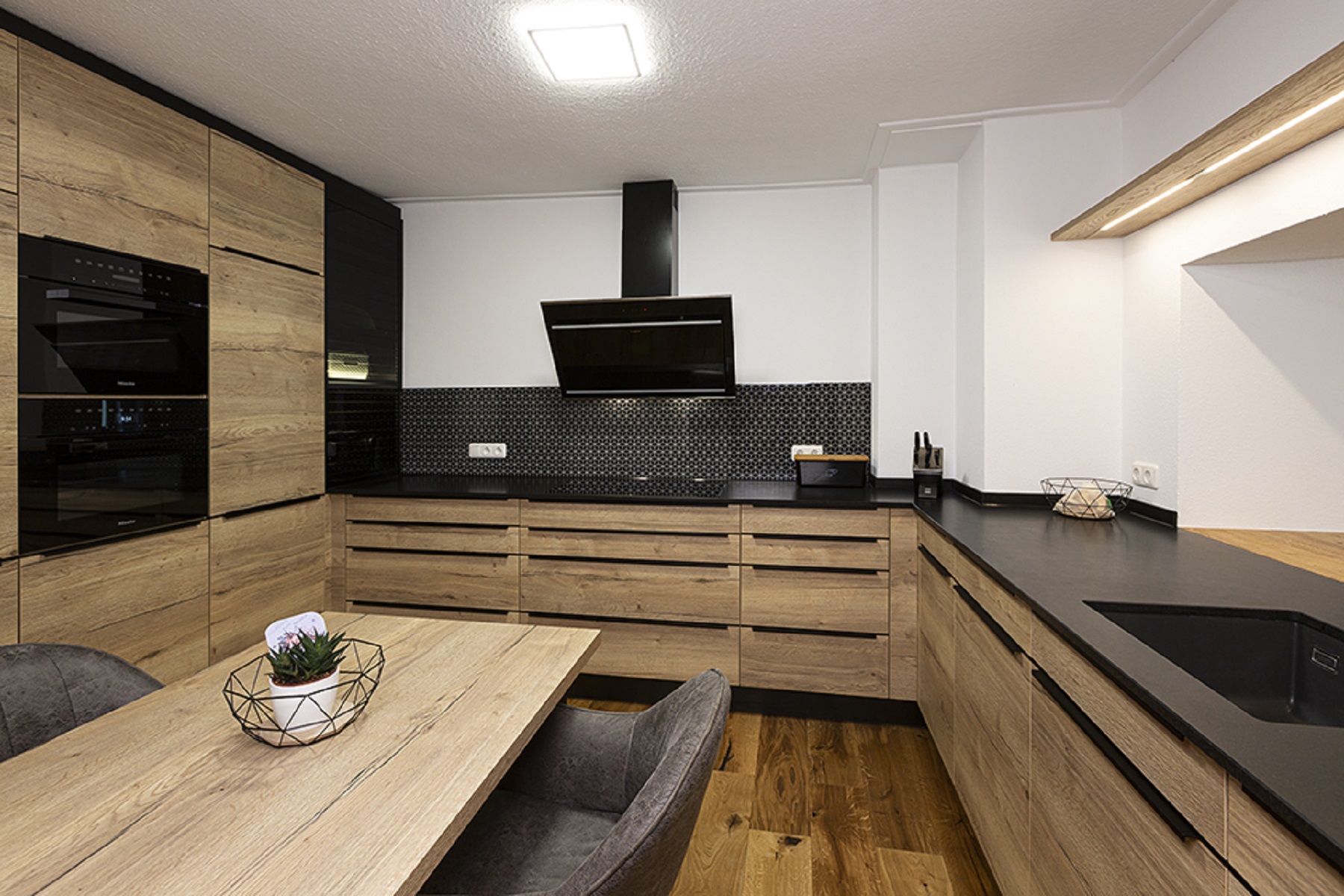 – Holzoptik mit schwarzen Akzenten