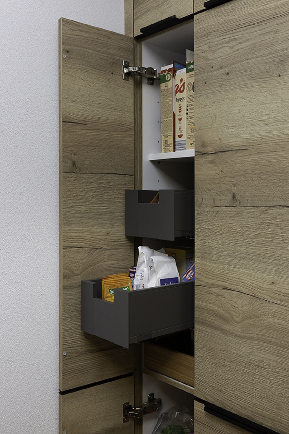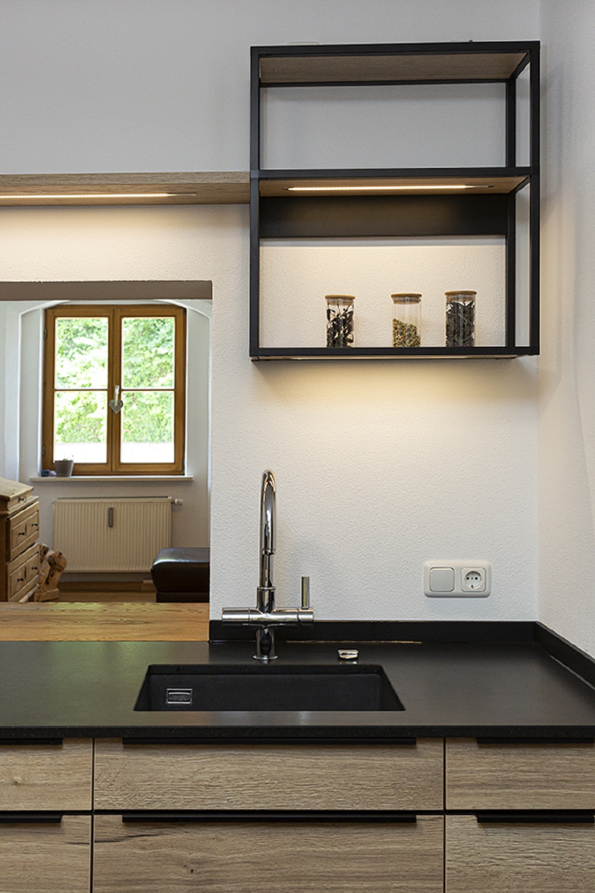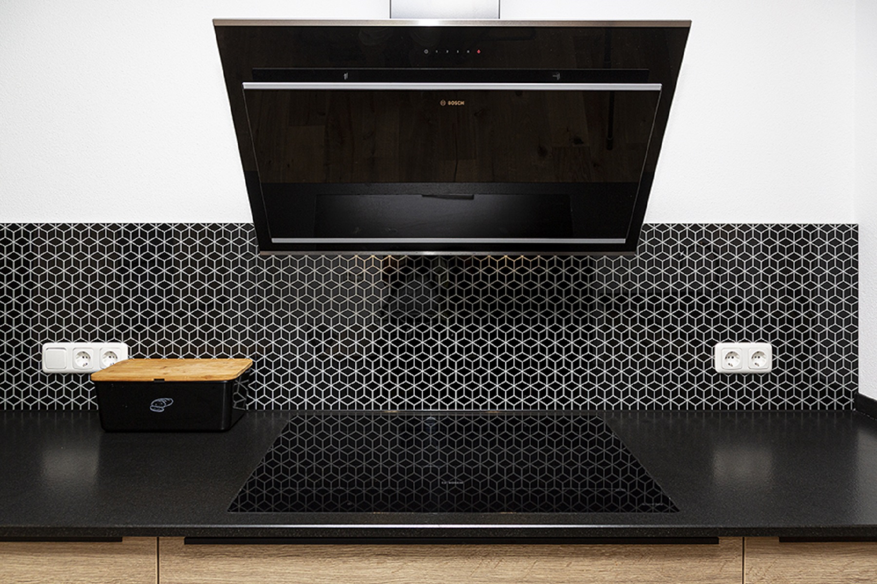 – Holzoptik mit schwarzen Akzenten
