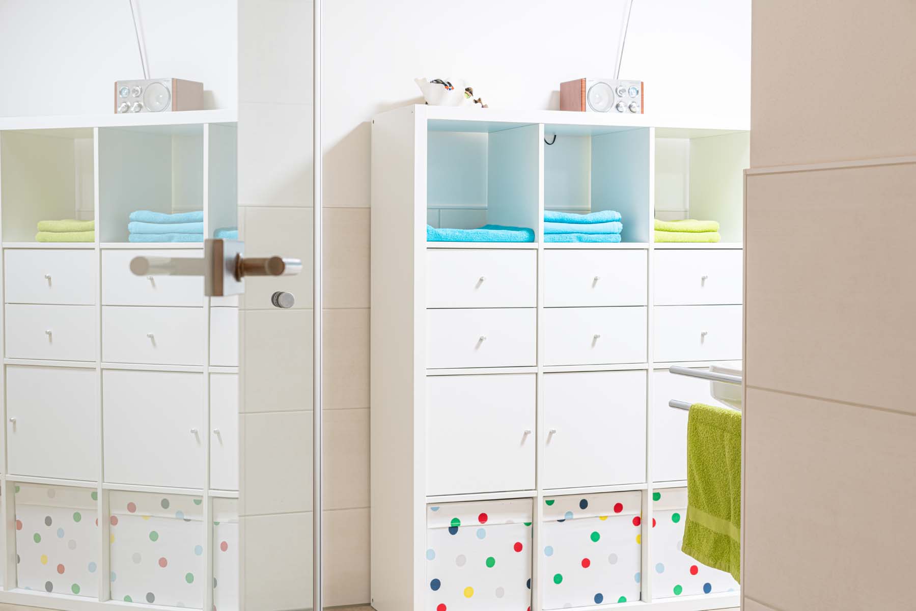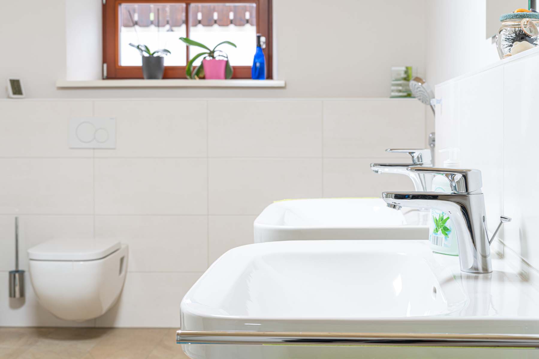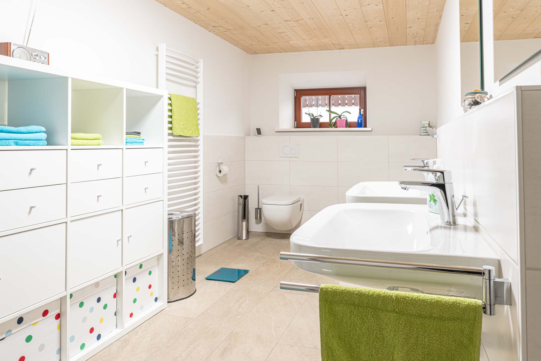 Hochwertige Materialien und das passende Zusammenspiel der Farben lassen das Bad zeitlos und modern wirken.