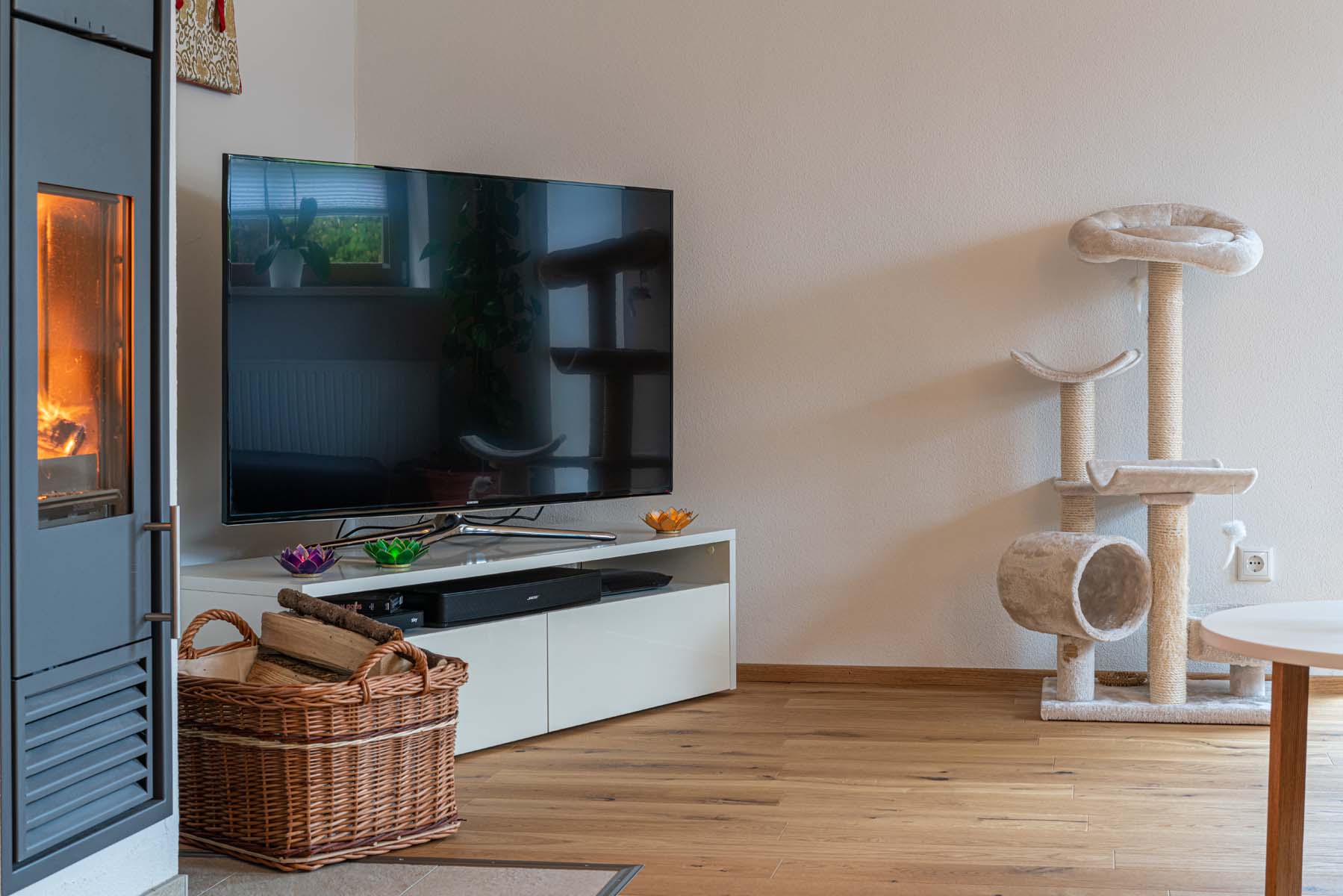 Das neue Wohnzimmer mit Kachelofen wurde von den tierischen Bewohnern bereits ab- und eingenommen.