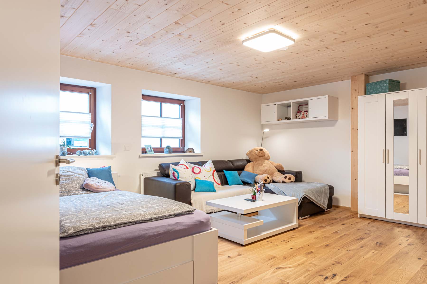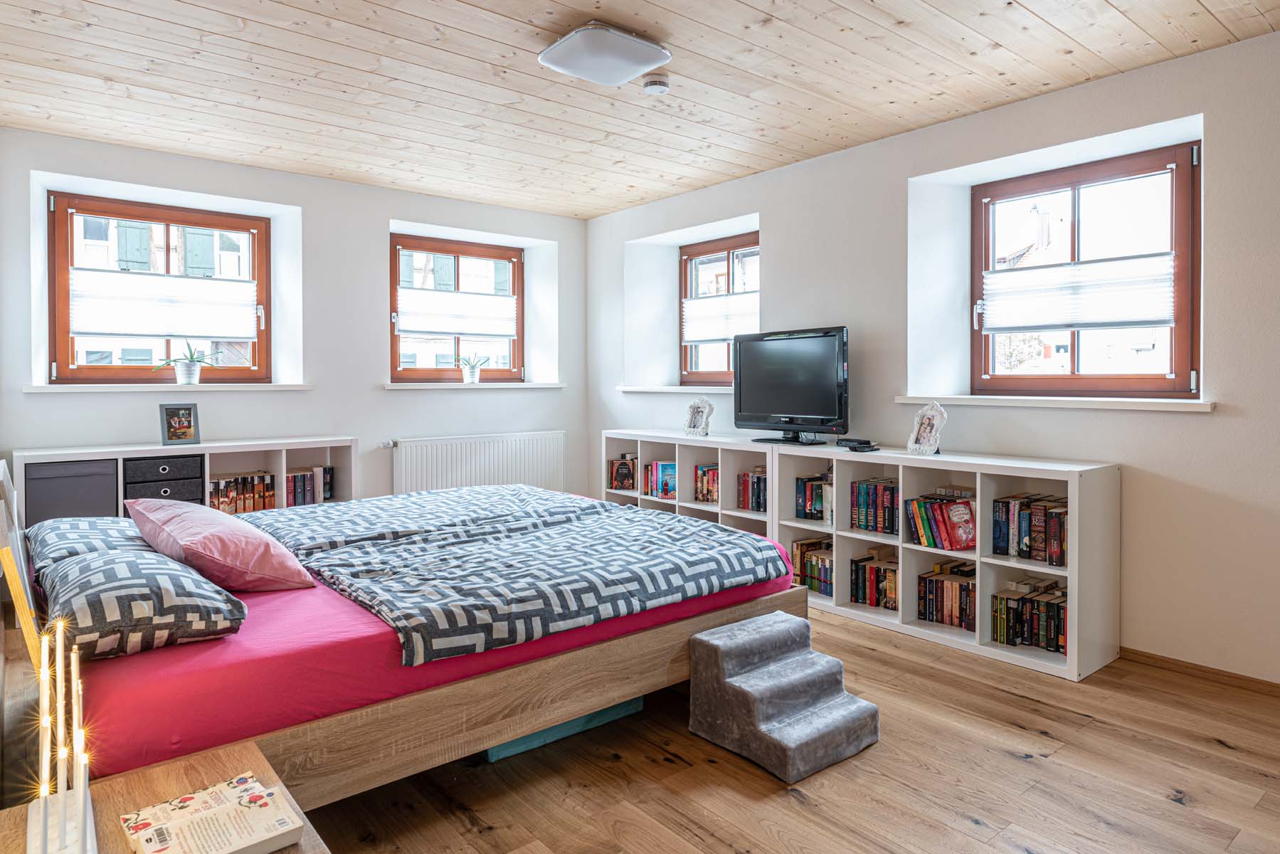 Da die Innenwände ganz individuell gestellt werden konnten, entstanden zwei helle und großzügige Schlafzimmer.