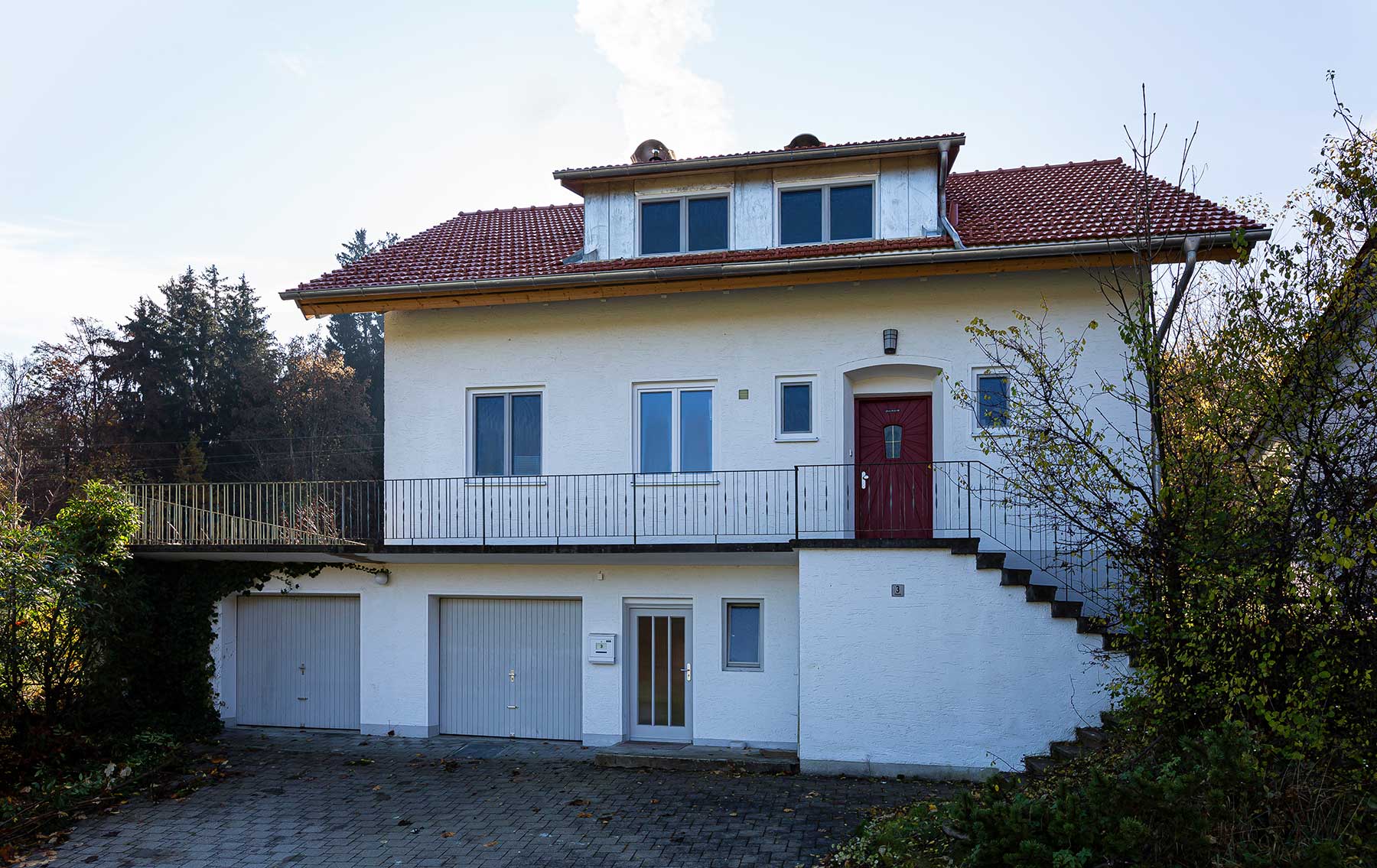 Außen wurden bei der Komplettmodernisierung die bestehenden Holzfenster durch hochwertige Kunststofffenster mit Vorbaurollläden ersetzt und das hohe Kinderzimmerfenster mit einem sog. „französischen Balkon“ gesichert.