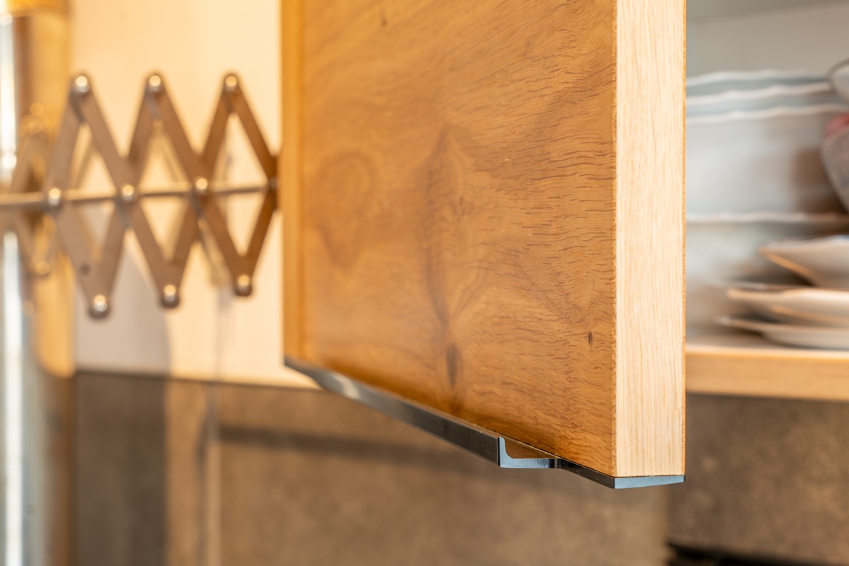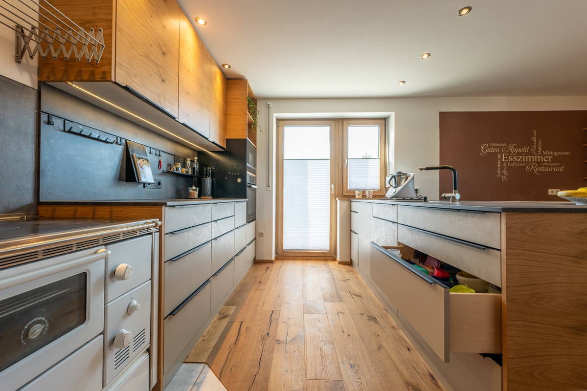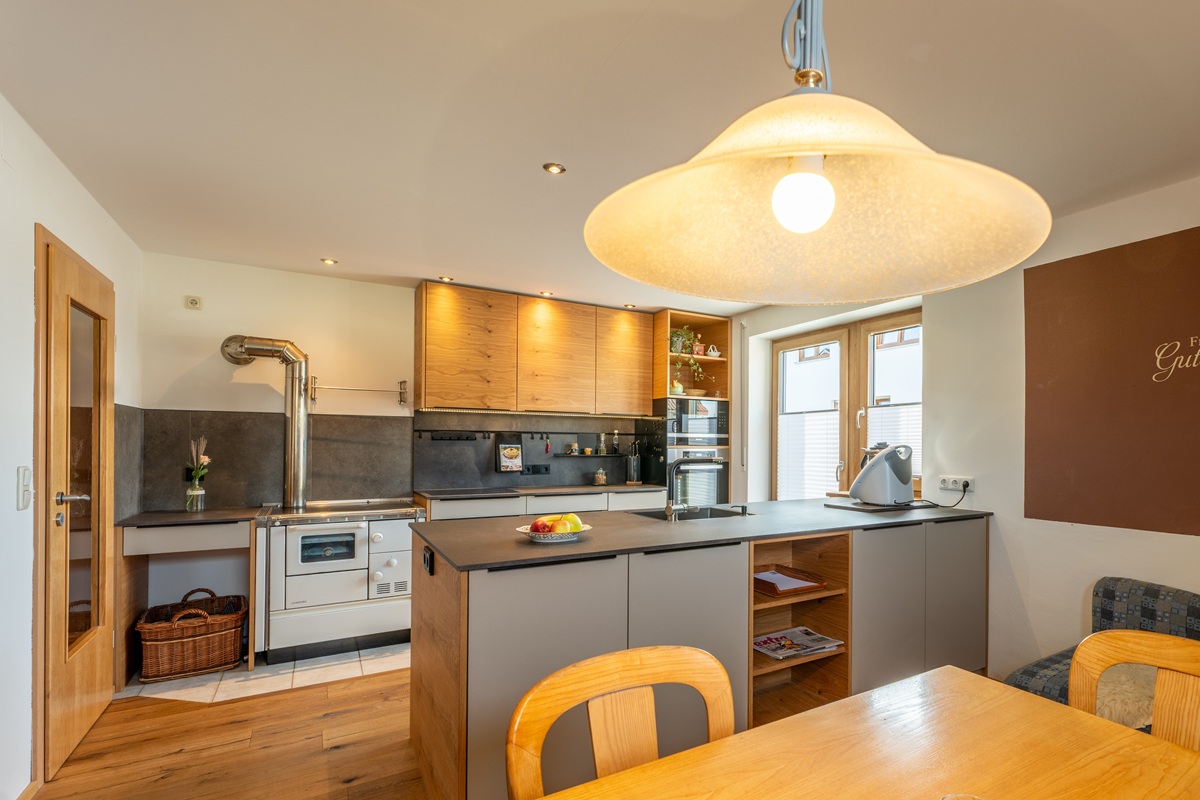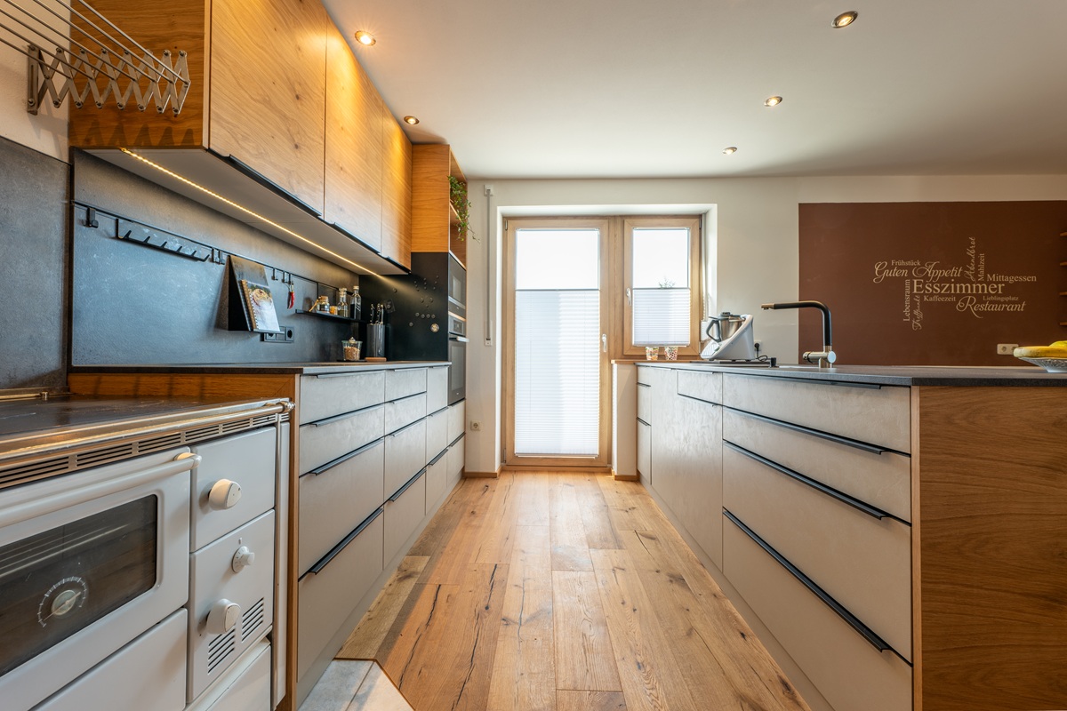 Ausgangslage für die neue Küche war es, den bestehenden Holzherd zu integrieren. Daher wurde die Küche von Hauser nicht einfach nur modernisiert sondern neu gedacht, angepasst und stimmig umgesetzt. So wurde sie ein Mittelpunkt des Wohnens – funktional und mit Flair zugleich.