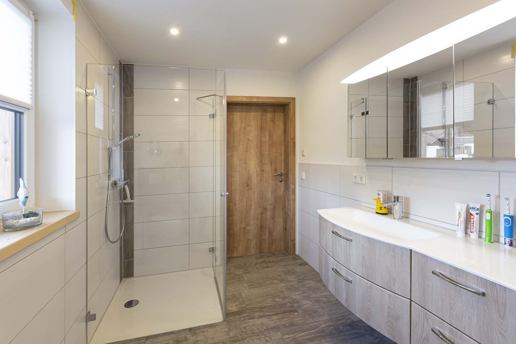 Durch die Hausaufstockung wurden alle Räume neu und hochwertig gestaltet. Das Bad konnte als zusätzlicher Raum geschaffen werden, da die Treppe nach aussen verlegt wurde.