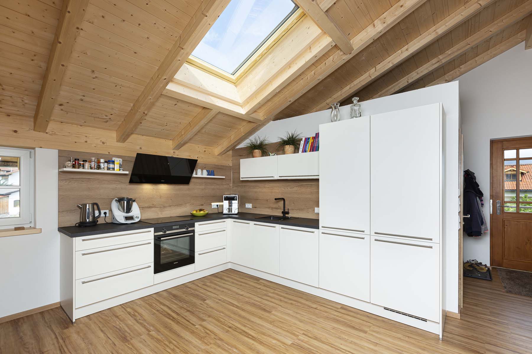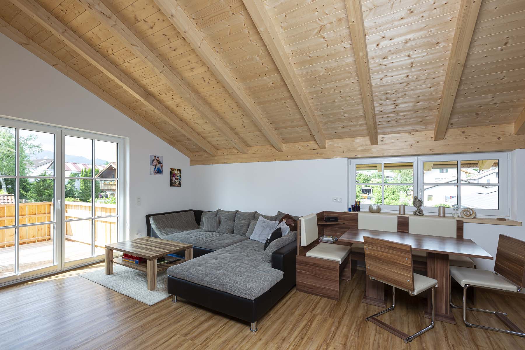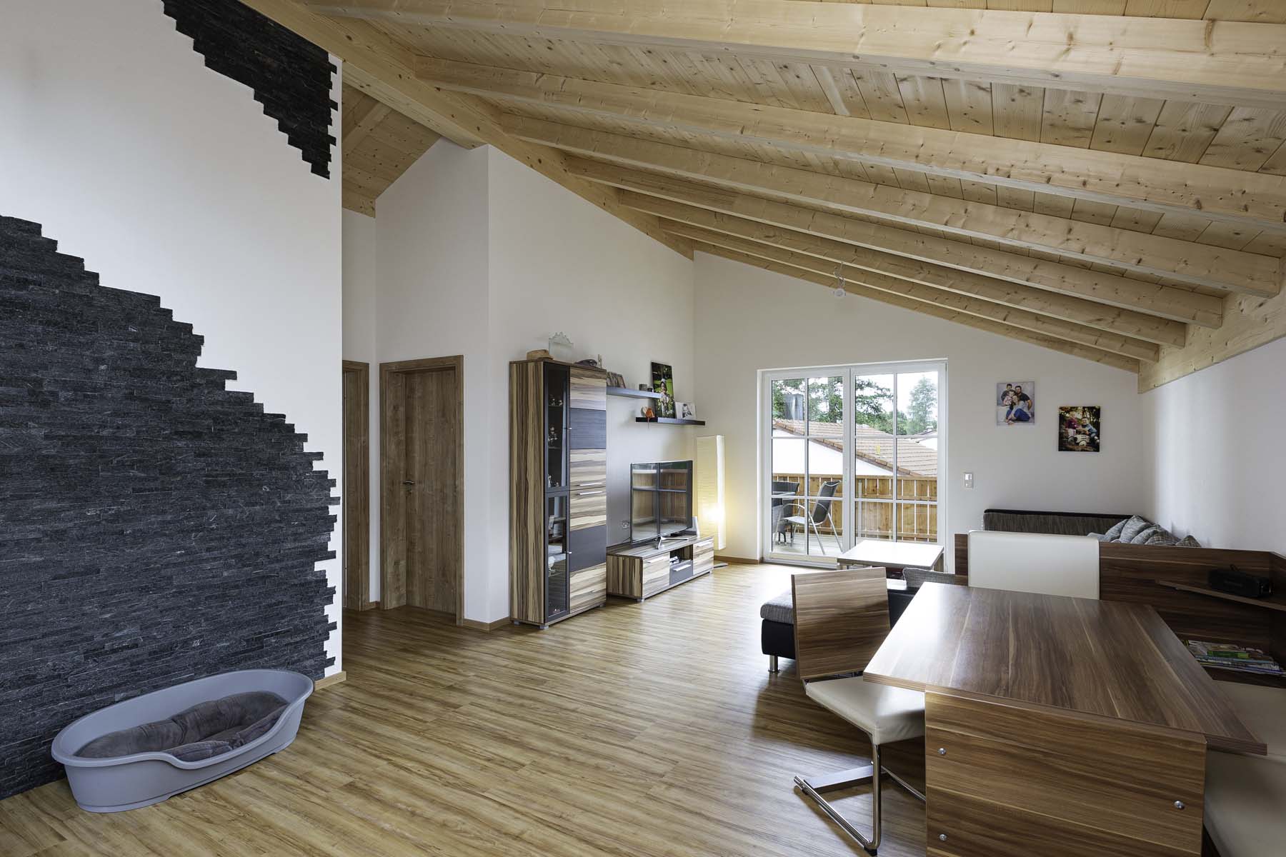 Der neue Sichtdachstuhl gibt den Räumen eine wohnliche Atmosphäre und schafft zugleich ein großzügiges Raumgefühl.