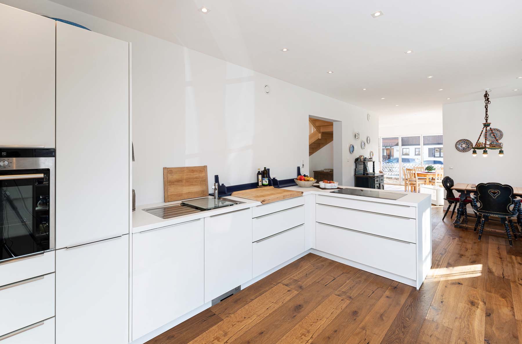 Jede Ebene verfügt über ein barrierefreies Bad und die Küche ist mit einer modernen, hochwertigen Küche „by Hauser“ ausgestattet.