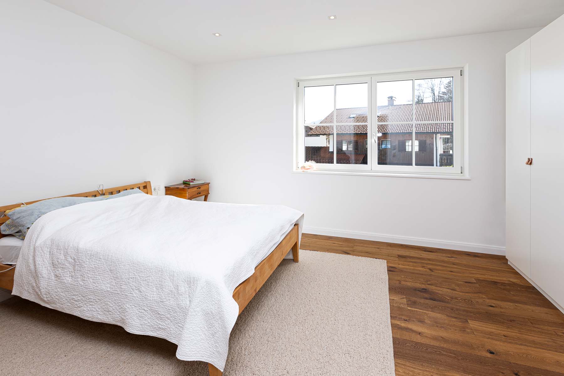 Das großzügige Haus wurde mit einer Wohnfläche von rund 300 m² in Holzbaubeise und dem Stil einer Villa realisiert. Als Nutzungskonzept ist vorgesehen, das Holzhaus mit separater Einliegerwohnung im Dachgeschoß in ein paar Jahren als „Senioren-WG“ nutzen zu können. Die Außengestaltung des Gebäudes mit seiner modernen Fassade und den charmanten Sprossenfenster fügt sich homogen in das bestehende Umfeld ein.