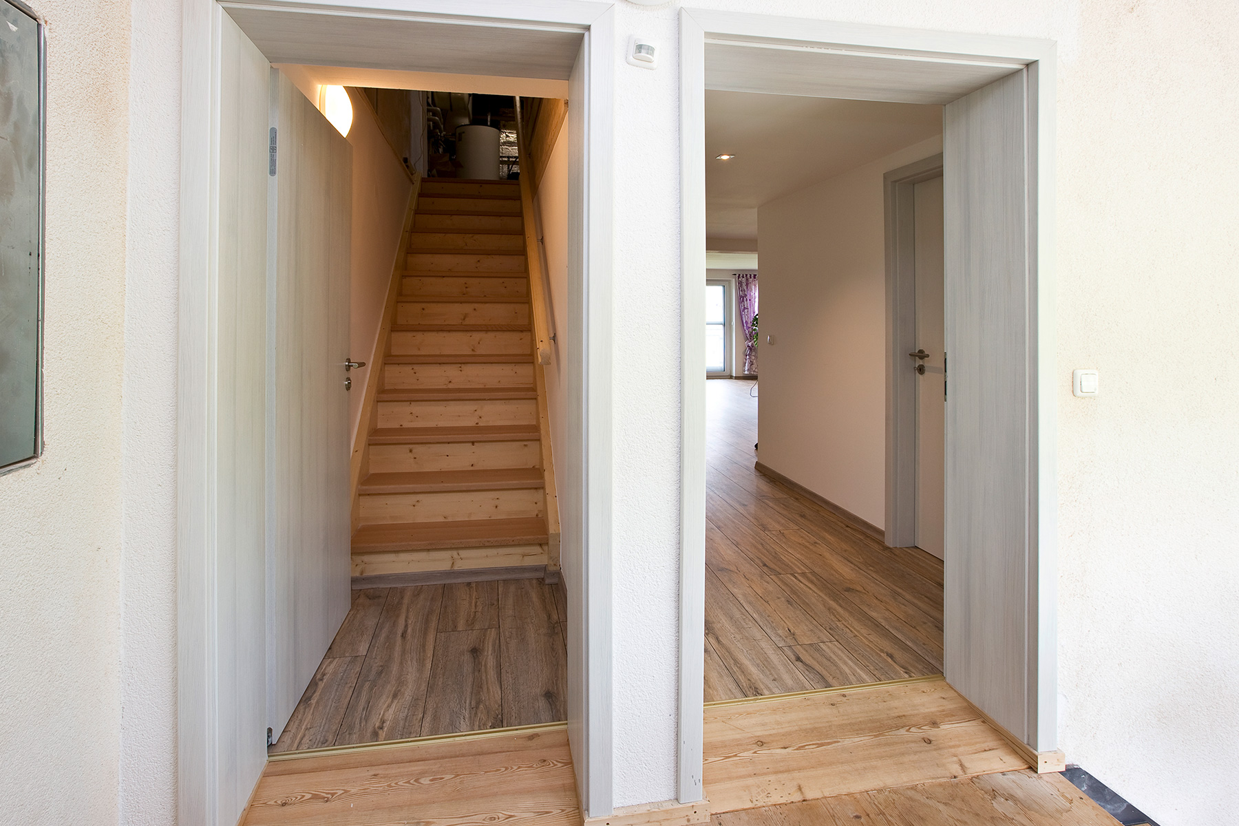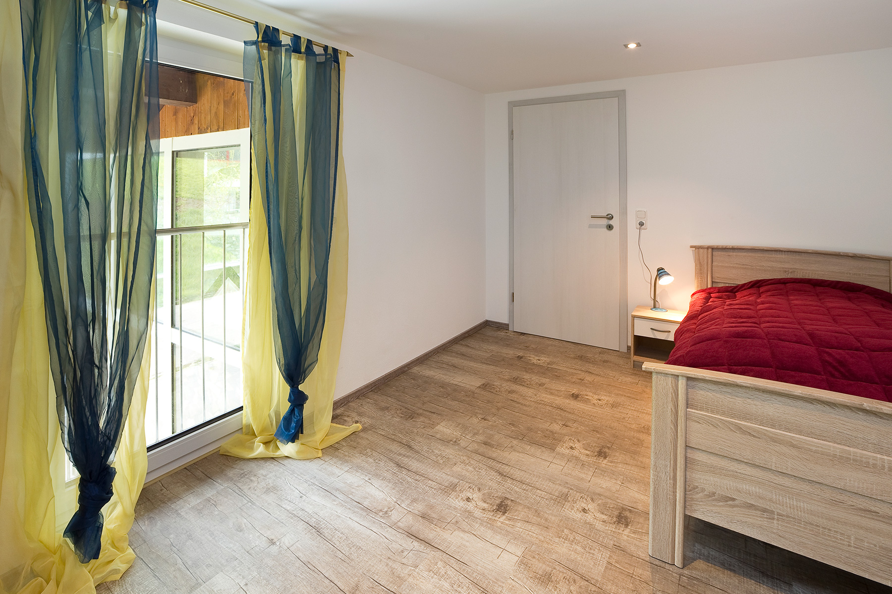 Sobald man die Wohnung betritt entsteht ein Gefühl von Freiheit und Offenheit. Licht und Raum werden vor allem durch die große Fensterfront auf der Westseite erreicht. Von dort ist auch der Zugang auf den neu entstandenen Balkon möglich. Deser fügt sich dezent in das neue Gesamtbild des Hauses ein. Der ursprüngliche Charakter wird dadurch nicht gestört.