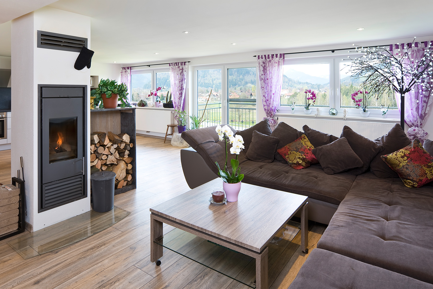 Im Wohnbereich wurde ein Kaminofen installiert. Und zwar ist dieser geschickt in den Kamin integriert. An kalten Wintertagen wird somit ein wohliges Gefühl von Behaglichkeit und Wärme erschaffen.
