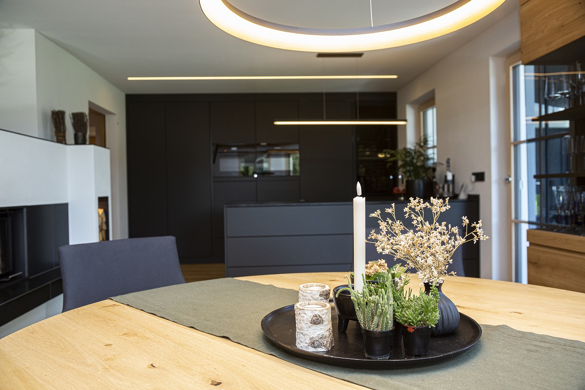 - Im Erdgeschoss wurden zentrale Wände entfernt und versetzt, wodurch fließende Übergänge zwischen Küche, Essen und Wohnen entstanden.