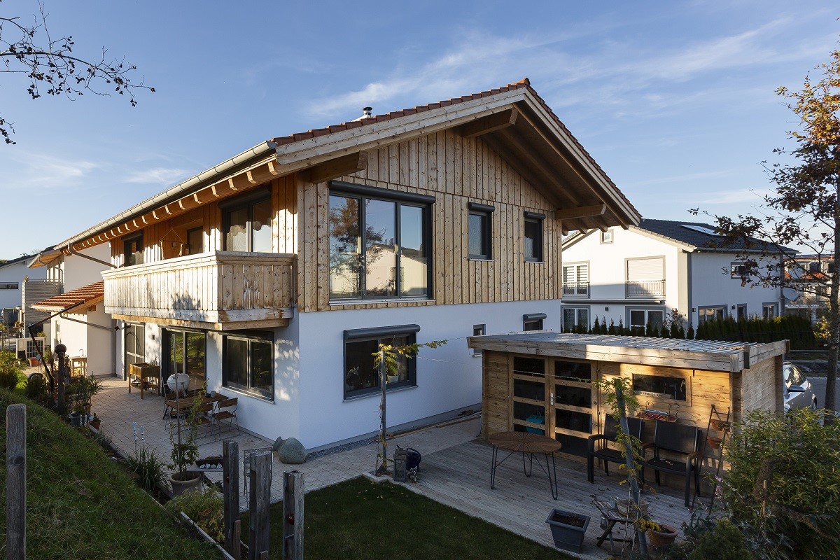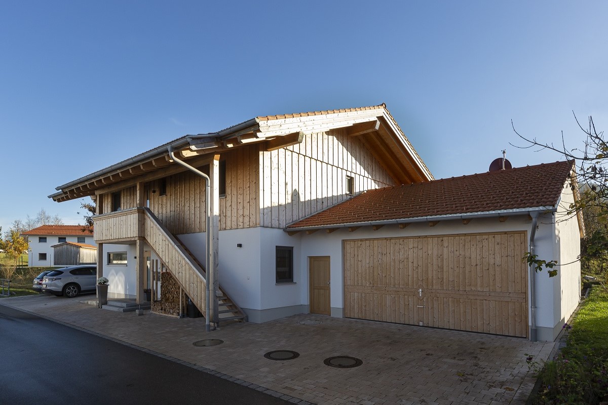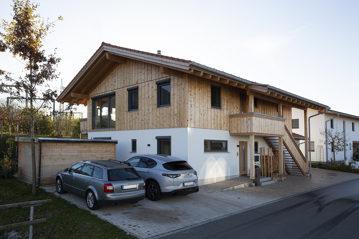 Effizienz, Stil und Naturverbundenheit vereint im schlüsselfertigen Zweifamilien-Holzhaus