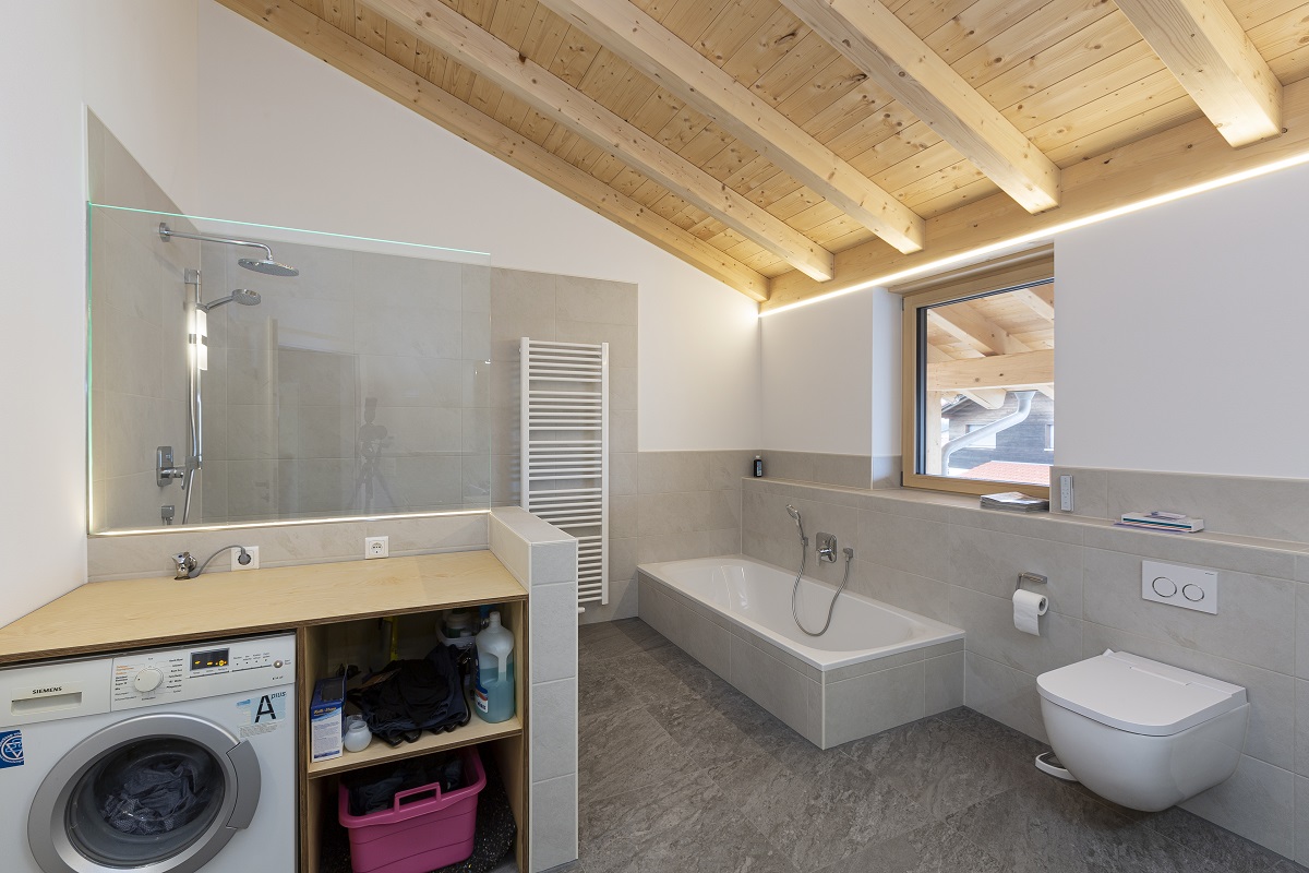 Hier war alles gefragt: Berücksichtigung individueller Kundenwünsche, technisches Know-how für eine durchgehend nachhaltige Bauweise und Organisationstalent für einen reibungslosen Ablauf. Besonders stolz sind wir darauf, wie harmonisch sich die beiden Wohneinheiten trotz getrennter Nutzung in ein gemeinsames, stilvolles Ganzes einfügen.