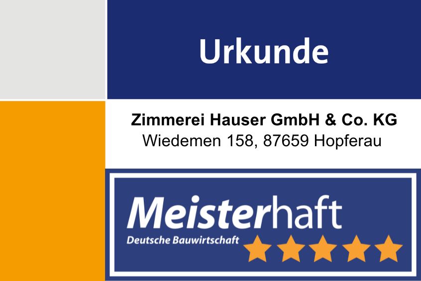 Zertifizierung Meisterhaft (5 Sterne) – Das Siegel für nachgewiesene Fachkompetenz am Bau. Meistens baut man nur einmal im Leben. Und dabei oft ohne eigene Erfahrung. Deshalb ist die Wahl des richtigen Bauunternehmens von zentraler Bedeutung. Doch wem kann man vertrauen? Die Deutsche Bauwirtschaft bietet hierfür eine klare Entscheidungshilfe an. Für die breite Palette der Bauberufe schuf sie das Siegel “Meisterhaft”. Was immer Sie vorhaben: Setzen Sie beim Bauen, Umbauen oder Modernisieren auf nachgewiesene Fachkompetenz! Bei Meisterhaft-Betrieben liegt es auf der Hand, dass sich Ihre Erwartungen an den Neubau, Umbau oder die Modernisierung erfüllen.
